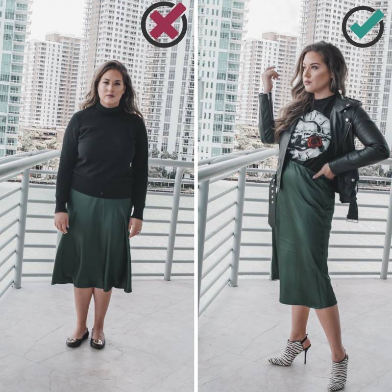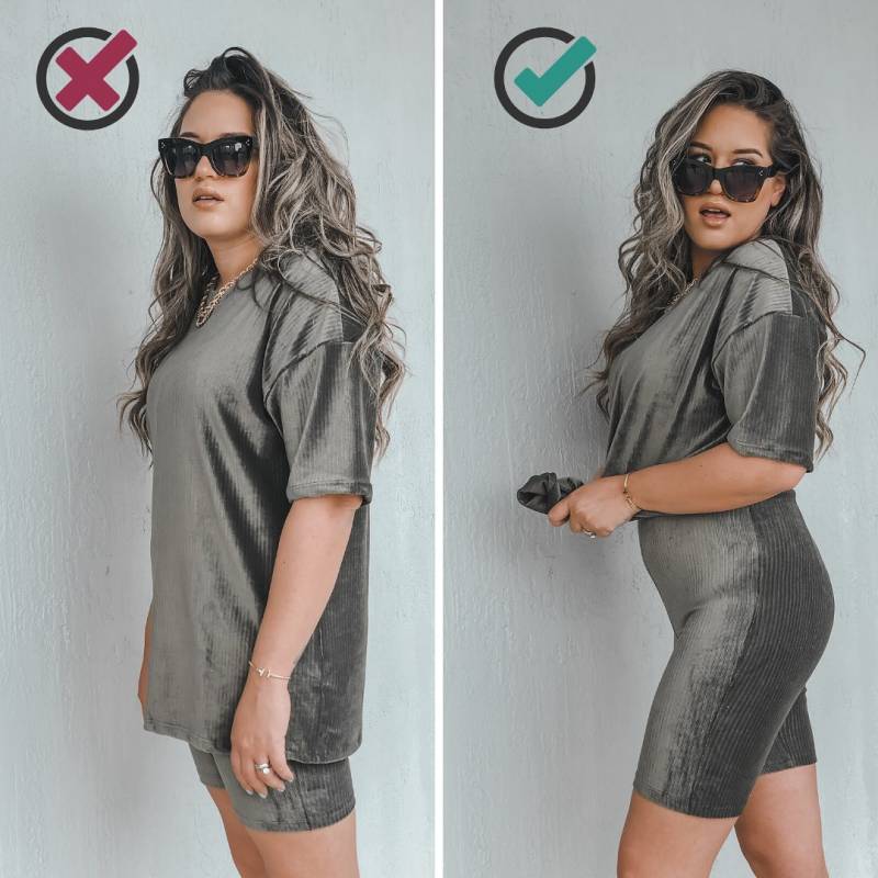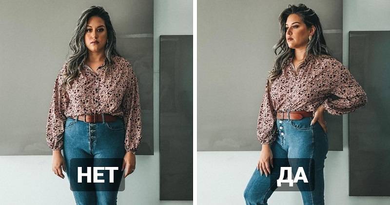 На втором снимке талия визуально тоньше, а фигура обретает изгибы. В то время как на первом всё ровно и скучно.