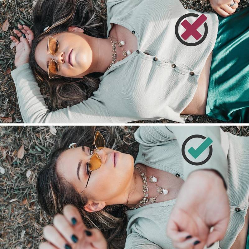 Как видите, если расположить руку под углом, перспектива не искажает её, и она выглядит изящней.